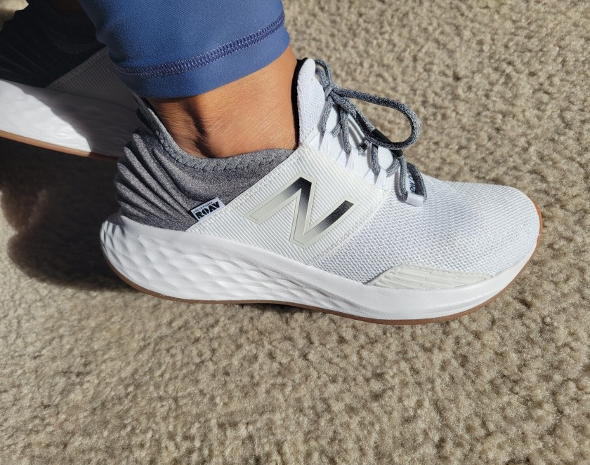 The type of shoe that you wear for your workout is super important, too. I typically incorporate walk/run intervals as cardio in my workouts, so a running shoe is what I typically gravitate towards. I have fallen in love with New Balance’s Women’s Fresh Foam Roav running shoe. They are super light weight and feel like you’re walking on clouds. I have recently purchased what I believe will be my sixth pair; I love them that much! I have them in white and also black. I will warn you that the upper is a bit thin, and if you tend to over extend your toes when you walk or run like I do, then this area may wear out a little faster than usual. But other than that, it’s a great shoe.